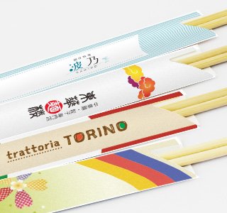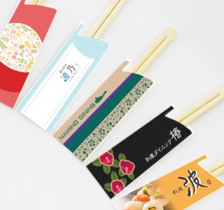 オリジナル箸袋をフルカラーで作成できます。オプションでお箸の追加・封入が可能です。