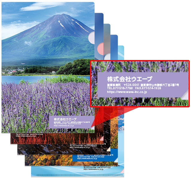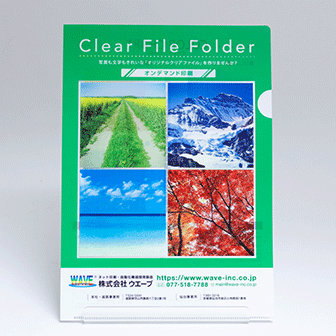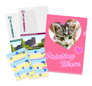 クリアファイルを自作するには、家庭用のプリンターに対応したクリアファイルを購入してご自身で印刷する手もありますが、ウエーブならプロレベルの高品質なクリアファイルを簡単に作成いただけます。