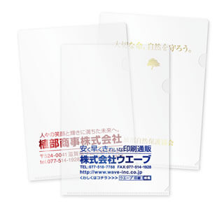 会社名や商品名、ロゴがプリントされたクリアファイルであれば、自社で使用するだけでなく、書類やカタログを顧客に配布する際にも活用ができます。
