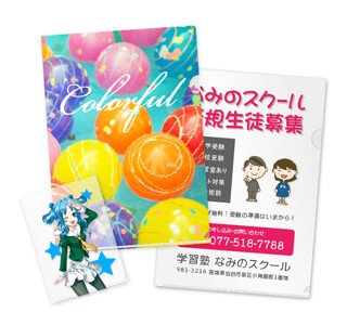ご入稿いただいたデータでオリジナルのクリアファイルをお作りします。