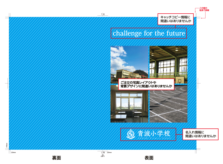 校了後、校正ミス・見落としによる刷り直しは、お客様負担になります。ご注意ください。