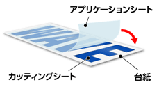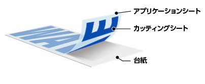 納品時は、アプリケーションシート、カッティングシート、台紙部分の3層構造になっています。貼付けする際には台紙部分を剥がしてください。