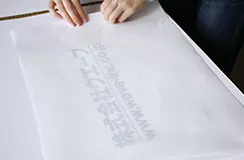 カス取りが完了したカッティングシート(切り文字部分)にアプリケーションシートを貼り合わせます。