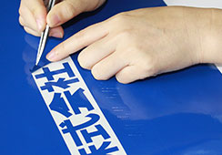 カッティングシートの不要な部分を取り除く作業を「カス取り」と呼んでいます。