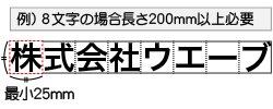 文字方向「横書き」において英数字専用フォントをご利用の場合は、高さは最小50mm以上必要です。