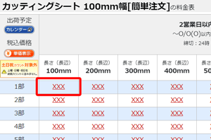 料金例 カッティングシート 100mm幅(簡単注文)/カッティングシート/2営業日/長さ100mm