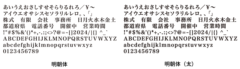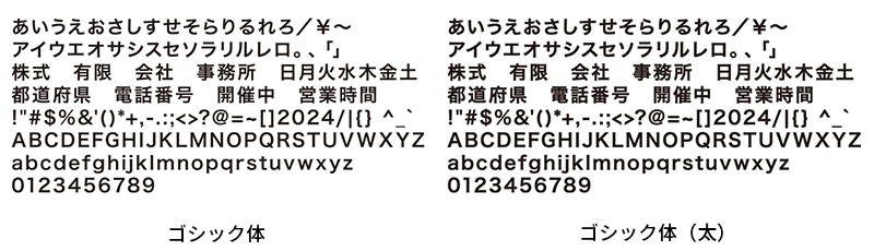 例)フォントの間違い ゴシックを選択されているが実際は明朝体をご希望だった場合