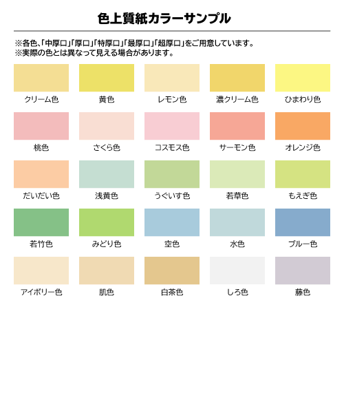 温かみのある、目に優しいナチュラルな黄色の用紙です。柔らかで落ち着いた印象に仕上がります。 |