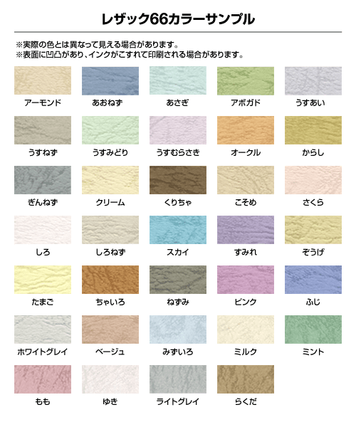 レザック66皮模様のエンボス加工が特徴の、表面に若干の凹凸のある用紙です。革製品のような高級感があります。 |