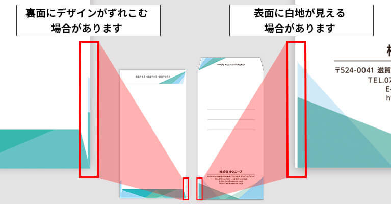 製造工程の都合上、下図のようにデザインが1mm~2mm程度表裏にずれる場合がございます。