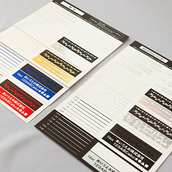 箔押し名刺、箔押しポストカード、箔押しタグ、招待状、レセプションカード