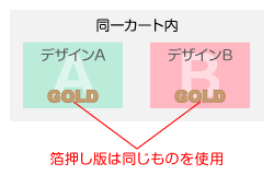 印刷データが2種類以上あり、同じ位置に同一型の箔押しを希望されている場合は、版代を抑えてお得にご利用いただけます。