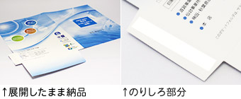マチ部分を組立て・糊付け後、見開いた状態で納品します。