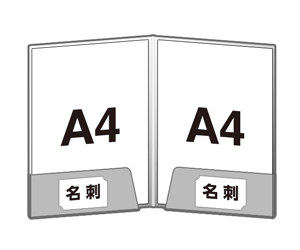 | A4ダブルポケットホルダー(ECO紙製フォルダー) | ポケットが2つ付いた大容量のフォルダーです。 | マチなし | チラシ2枚~数枚程度+名刺2枚 |