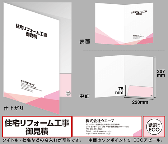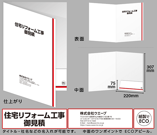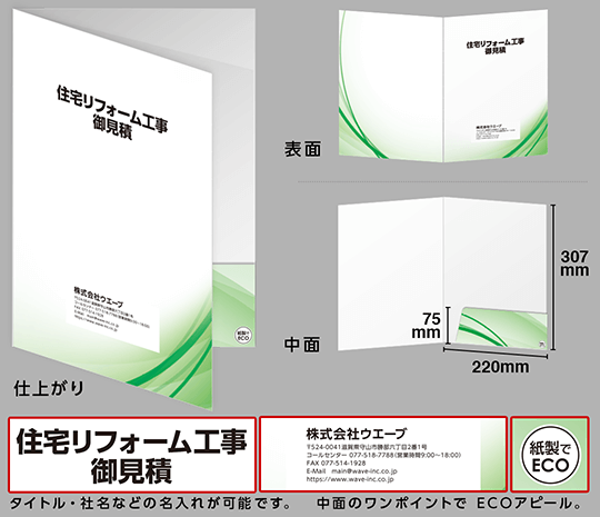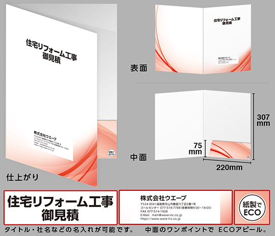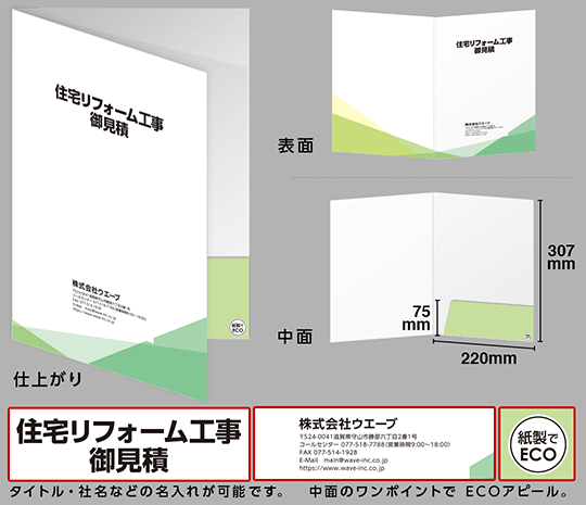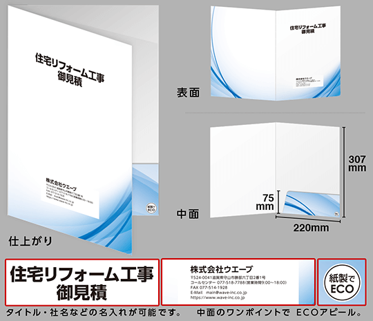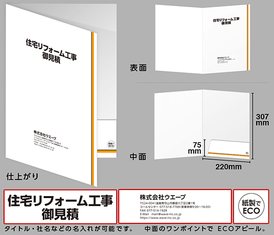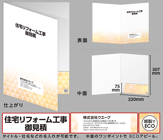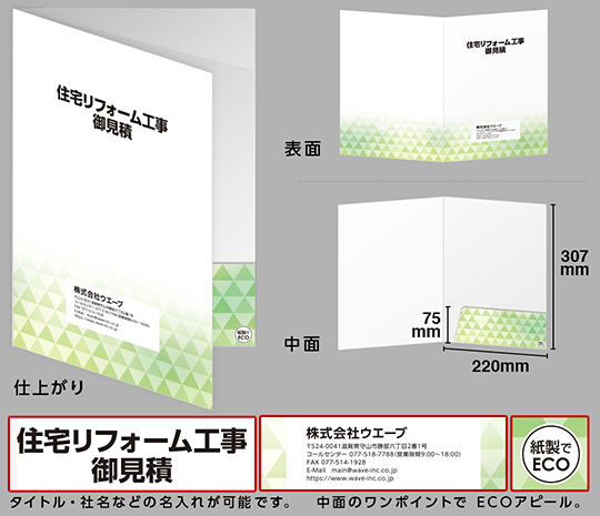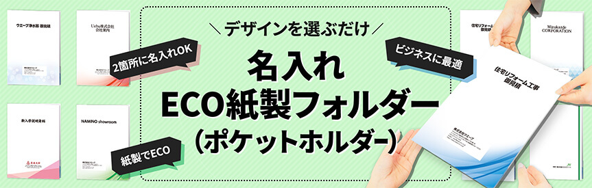 データ入稿不要で、名入れポケットホルダー(ECO紙製フォルダー)が作成できます。