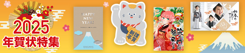 申し訳ございませんが、「お年玉付き年賀はがき」や「寒中見舞いはがき」、通常はがきなどの郵便はがき(官製はがき)への印刷は受付しておりません。