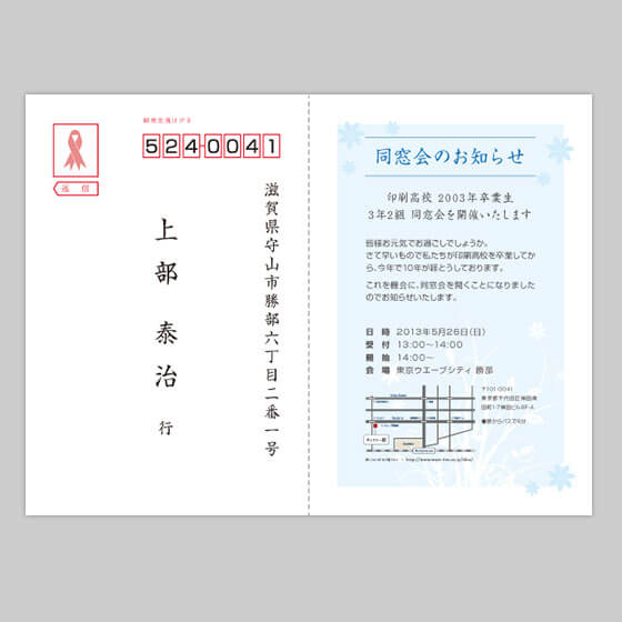 | 往復ハガキ | 200×148 | 招待状、案内状、申込書付きハガキ、グリーティングカードなど | |