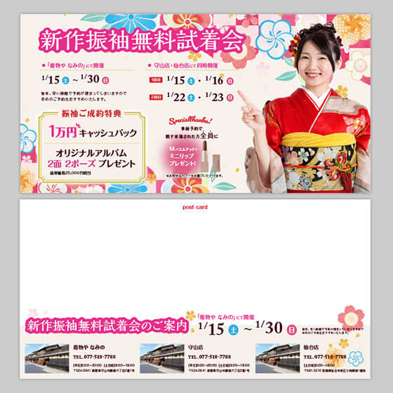 | ポストカード(両面) | 印刷費 + 16,500円~ | 印刷納期 +3営業日*~ |