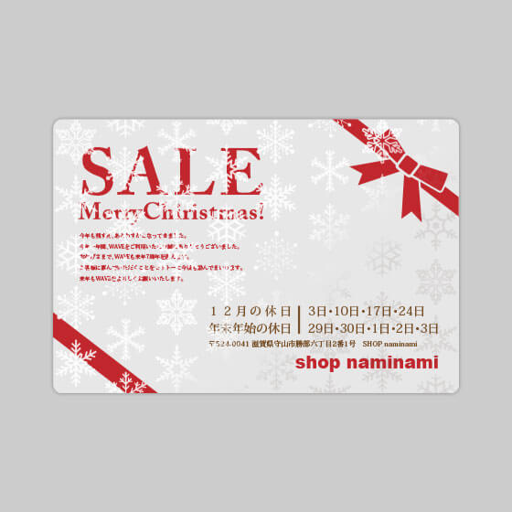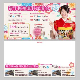 宛名面もお客様でデータを作成・入稿していただく必要がございます。(年賀状として使用される際には、宛名面に赤で”年賀”の表記が必要です。両面カラーをお選びください)