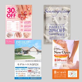 - 料金は、サイズと印刷の色数(片面または両面)によって変わります。