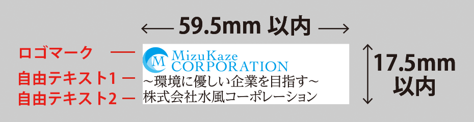 ※「ロゴマークなし+自由テキスト1行のみ」の場合→名入れ位置によって異なります。(縦:中央揃え/横:右揃え)