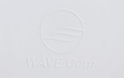 社名や企業ロゴ、ブランドマークにエンボス加工をプラスすることで、ワンポイントでも格調高く高級感のある仕上がりに。
