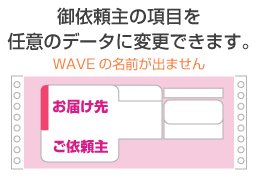 ウエーブにも便利な配送オプションがあります。その一つが「納品代行オプション」(無料)です。これは発送元の名義(ご依頼主)を変更できるサービスで、発送元であるWAVEの名前や商品の金額を一切出さずに、相手の方に商品をお届けすることができるんです。