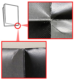 弊社ではできるだけシワとズレを抑えるよう、細心の注意を払って加工しておりますが、折り加工により必ず生じる現象です。予めご了承いただきますようお願いいたします。