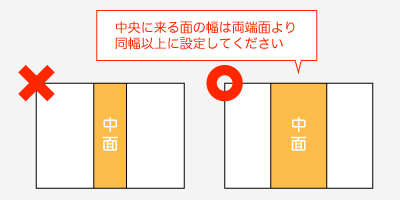 中面が両端の二面より短いサイズの場合は、折り加工の機械の特性上、対応いたしかねます。
