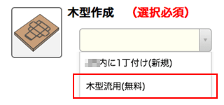 料金表をクリック後、ご注文STEP3の「木型作成」にて、「木型流用」をご選択ください。