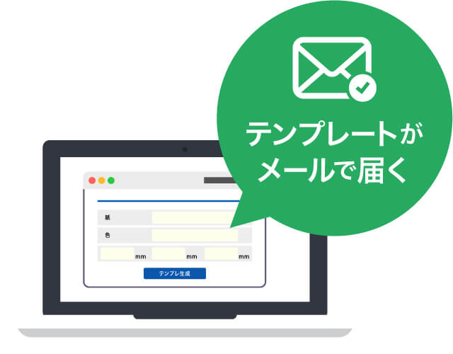 まずは対応サイズの確認後、展開データを作成します。お客様のご希望のサイズにあわせて、自動でテンプレートを生成・送付いたします。