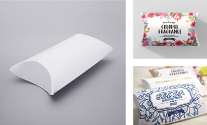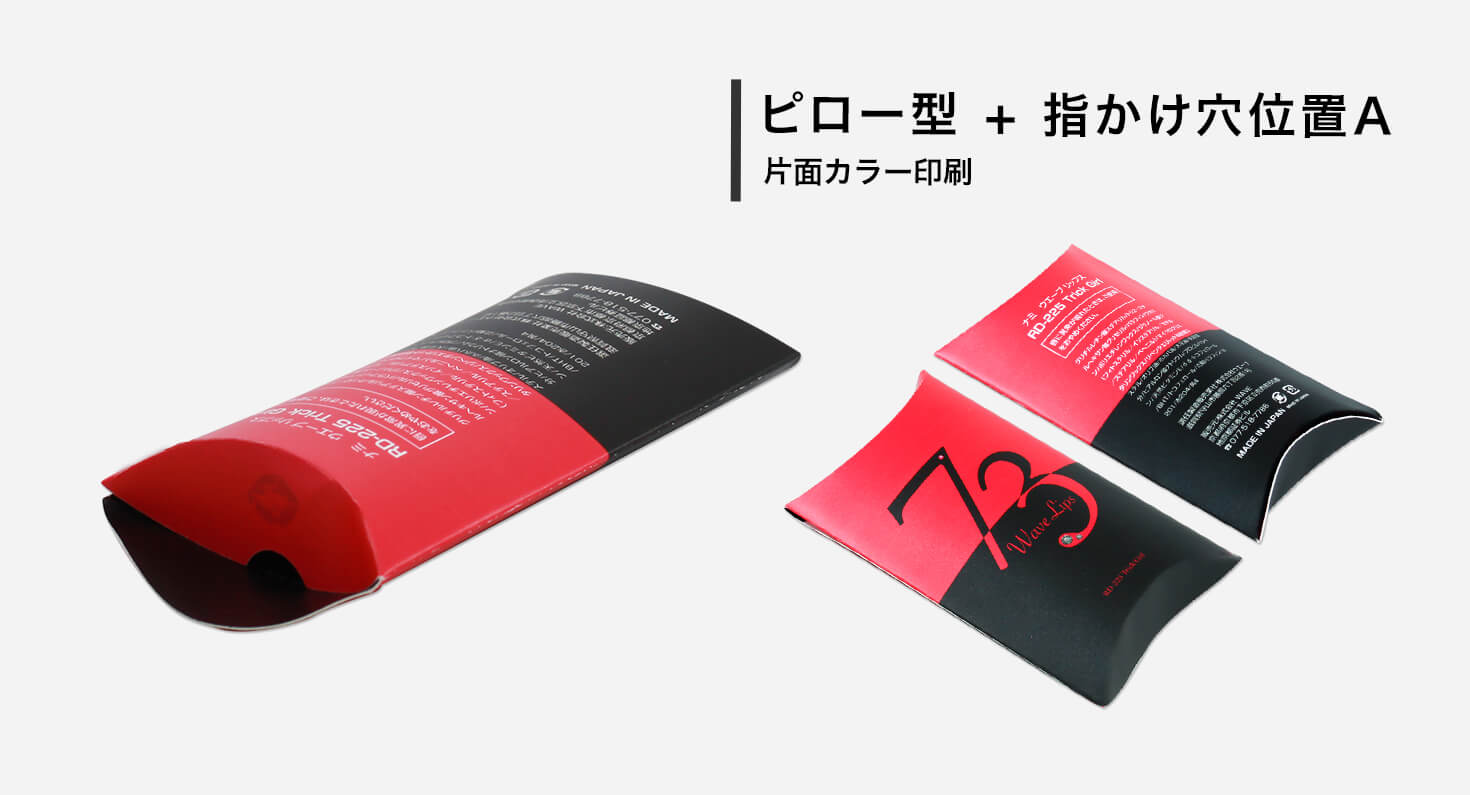 | ピロー式 | アクセサリー、ハンカチやタオル、靴下などの衣類品、個包装されたお菓子など、軽いものや形状に自由度がある物のパッケージに向いています。 高級感を演出できるため、デパートやアパレルショップ、雑貨店などではプレゼント用のボックスとして使用されています。 |