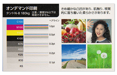 また、凹凸があるにも関わらず印刷による発色・精細さが優れた用紙となっております。
