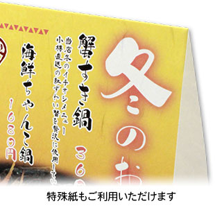 オンデマンド印刷の卓上POPなら10部からご注文いただけます。期間限定のキャンペーンやイベントの告知、季節商品のPRに最適です。