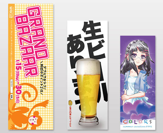 | 半裁 | B3短冊 | 515×182 | 商品PRポスター、キャラクターポスター、POP、メニューなど |