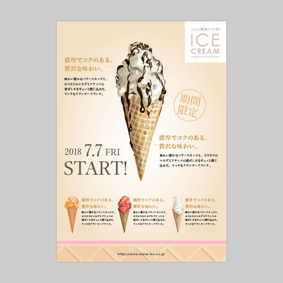 デザイン的には、遠くから見ても内容が伝わるように、写真や文字を大きく配置したものが多く見られます。このようなデザインのポスターは、掲載できる情報量が限られるため内容を絞り込む必要はありますが、歩いている人にも伝わりやすいというメリットがあります。駅貼りポスターなどで効果を発揮することができるデザインです。