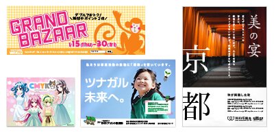 お祭りイベントポスター / 学校PR生徒募集ポスター / 飲食店商品PRポスター / キャラクターポスターカレンダー / ドライブマップ / ウェルカムボード / 同人誌即売会の展示スペース
