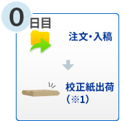 下記の日程は、あくまで一例になります。印刷物の出荷から翌日に届かない場合や、修正にお時間がかかる場合、さらに日数が必要になりますのでご注意ください。