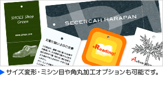 各種加工にも対応しておりますのでニーズに応じた商品タグを作成いただけます。