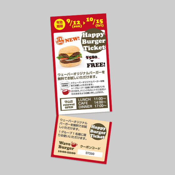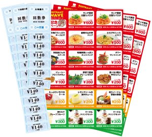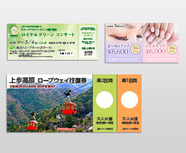 ミシン目入り割引券 / オープンキャンパス学食クーポン / 前払い引換券・金券 / チケット風招待状 / 切りはなせる"しおり"
