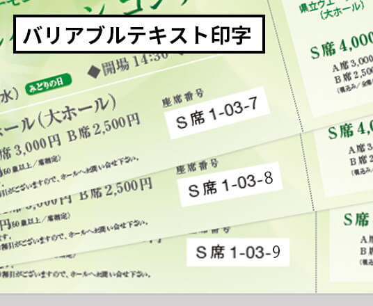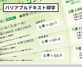 座席番号や管理番号の印字に欠かせない「連番印字」「バリアブルテキスト印字」に対応。