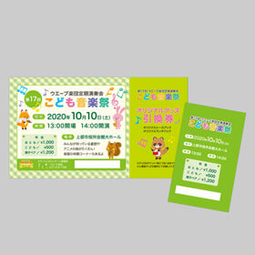 ウエーブでは、短辺50~75mm、長辺100~210mmの範囲内であれば、1mm単位で自由にサイズを指定してチケットを作成できます。この範囲外の大きさのチケットを作成されたい場合は、連量135kg以下の用紙なら「チラシ/フライヤー印刷」、それよりも厚みのある用紙なら「はがき/ポストカード印刷」または「厚紙印刷(A判・B判カード)」に、「ミシン目加工オプション」を追加していただくと、さまざまなサイズのチケットを作成いただけます。