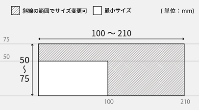 | チケット | 50×100~75×210以内 (最小50×100 / 最大75×210) |