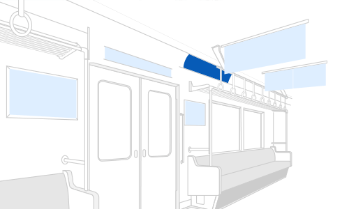 車内側面の上部に掲示されます。比較的掲出期間が長く、商品広告や教育関係、金融、官公庁等の掲出がよく見られます。