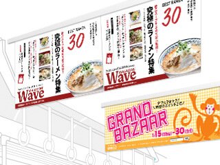 車内の中心部に掲示され注目されやすいのが特徴。新製品の発売やキャンペーン・イベント等の告知・広報によく利用されます。