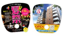 また、扇いで使ってもらうことで、広告塔のようにさまざまな人に向けてPRができる販促物でもあります。開店情報や不動産広告のほか、セール、イベントなどの広告を記載することで、情報を拡散することができます。