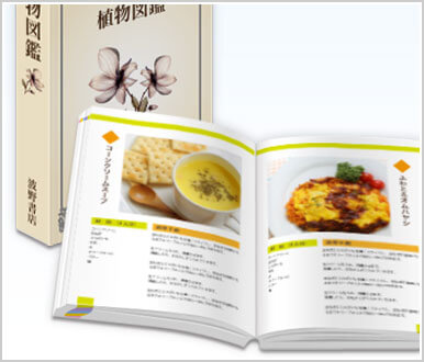 背の形状によって背が丸く綴じられている丸背製本と四角く綴じられている角背製本に分けられ、主に小説や絵本、記念誌、写真集などに利用されています。